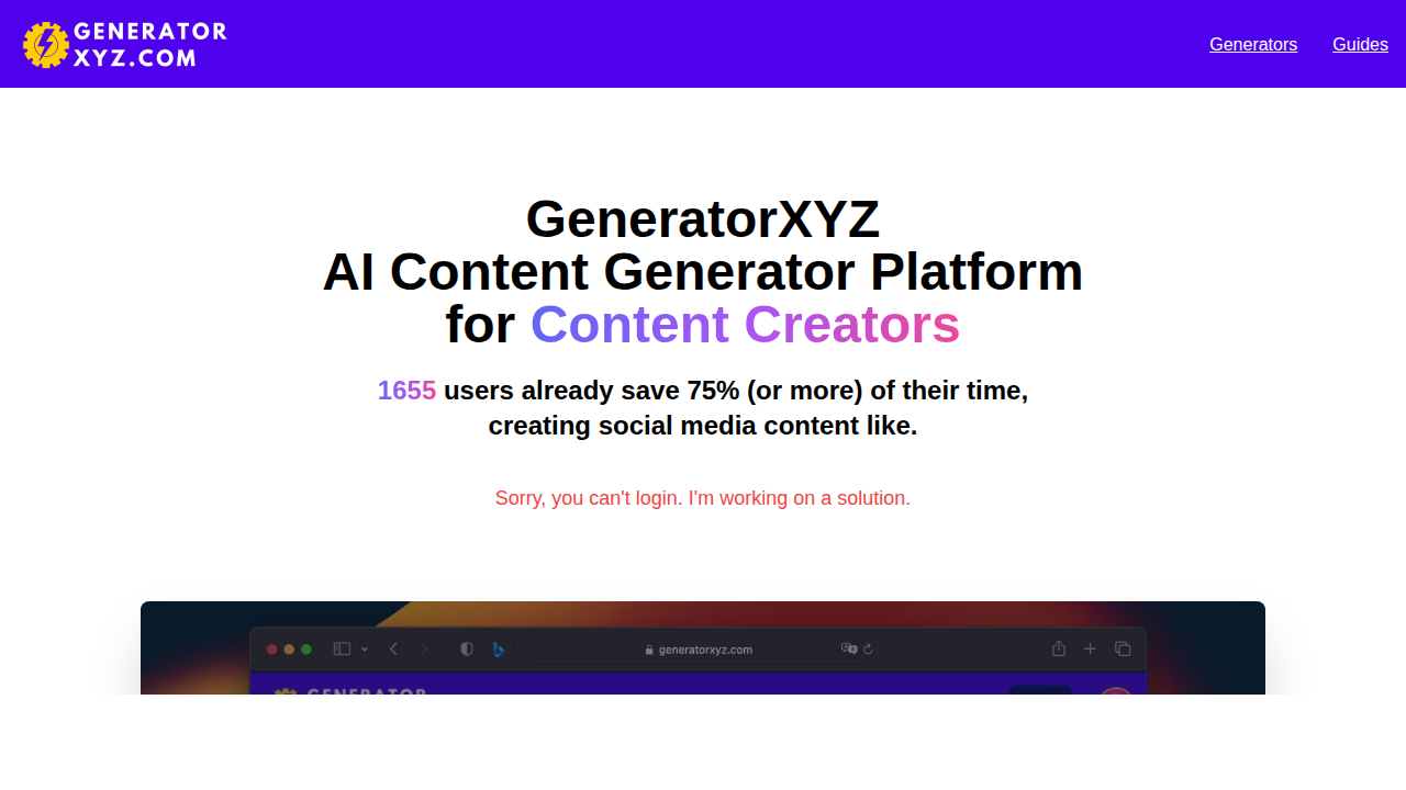 GeneratorXYZ — это платформа для создания контента с использованием искусственного интеллекта, которая предлагает генераторы сообщений для социальных сетей, функции автопилота и инструменты обобщения. У него есть сообщество из 705 человек и подписка на рассылку обновлений.