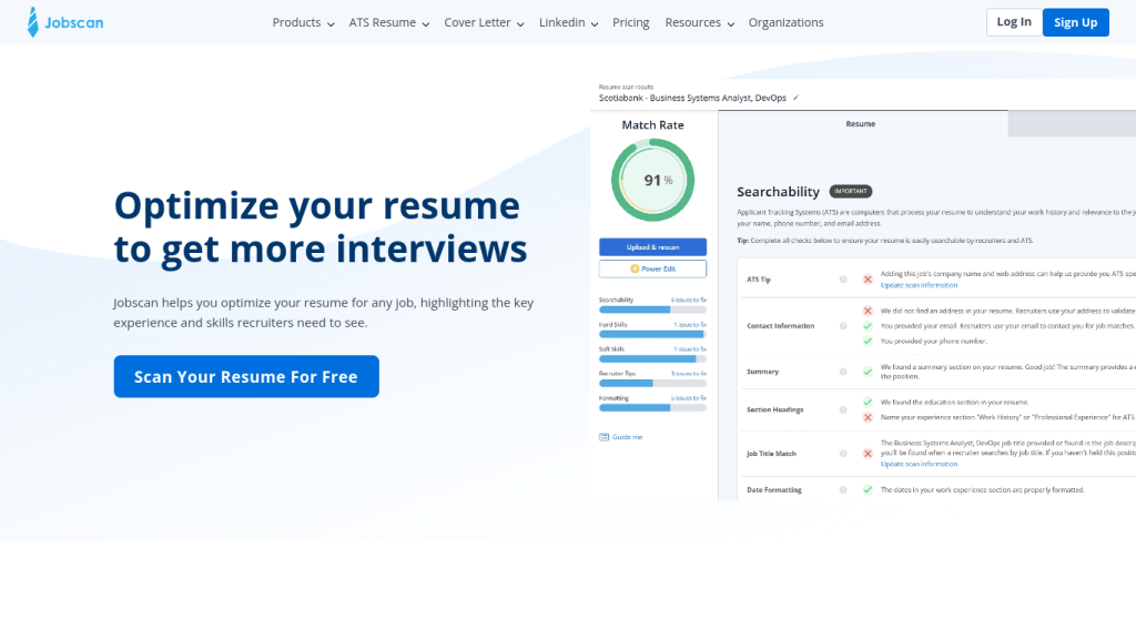 Jobscan — это инструмент оптимизации резюме, использующий алгоритмы ATS для увеличения шансов на собеседование.