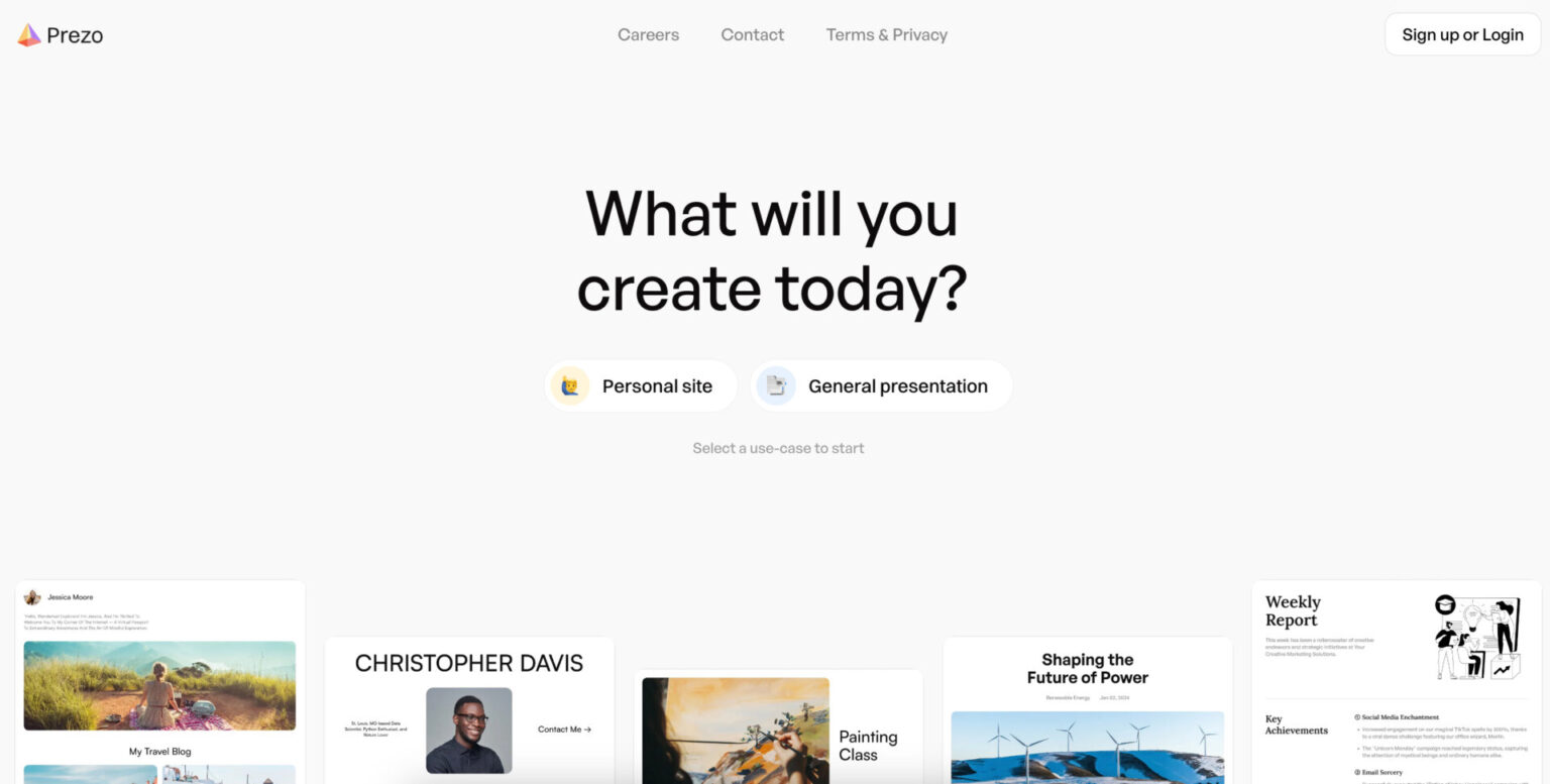 Prezo AI — это онлайн-платформа, которая использует искусственный интеллект для упрощения создания презентаций, документов и веб-сайтов. Сервис предлагает готовые шаблоны и интуитивно понятный интерфейс, что делает его доступным для пользователей любого уровня подготовки.