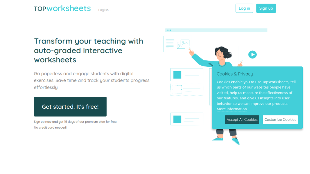 Topworksheets — это инструмент на базе искусственного интеллекта, который помогает учителям создавать цифровые интерактивные рабочие листы и упражнения для своих учеников, экономя время и позволяя отслеживать прогресс.