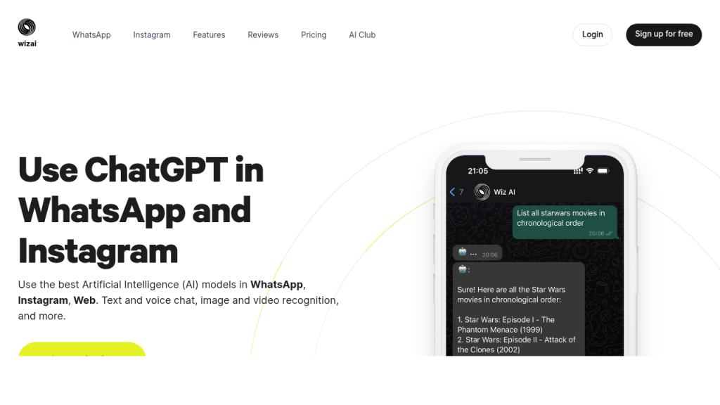 Wiz AI — это чат-бот WhatsApp, который использует искусственный интеллект для ведения диалога на естественном языке и взаимодействия с пользователями в увлекательной манере разговора.