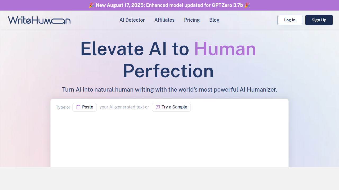 WriteHuman — это инструмент искусственного интеллекта, который помогает пользователям очеловечить свой контент и обойти обнаружение искусственного интеллекта. Он безупречно работает с такими популярными платформами, как Turnitin, Zerogpt и другими, позволяя пользователям уверенно отправлять контент, не вызывая тревог. Встроенный детектор искусственного интеллекта WriteHuman гарантирует, что текст не будет обнаружен.